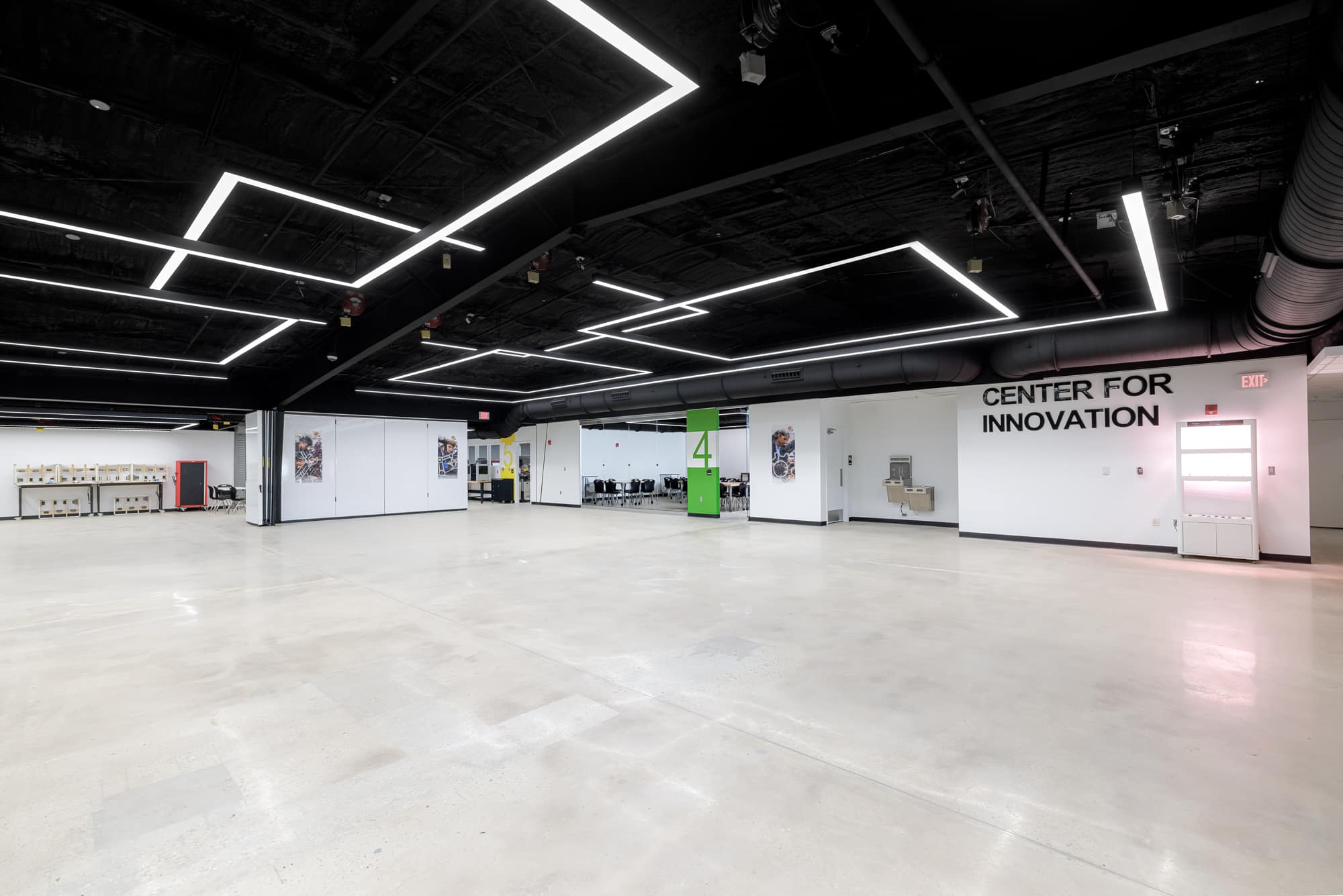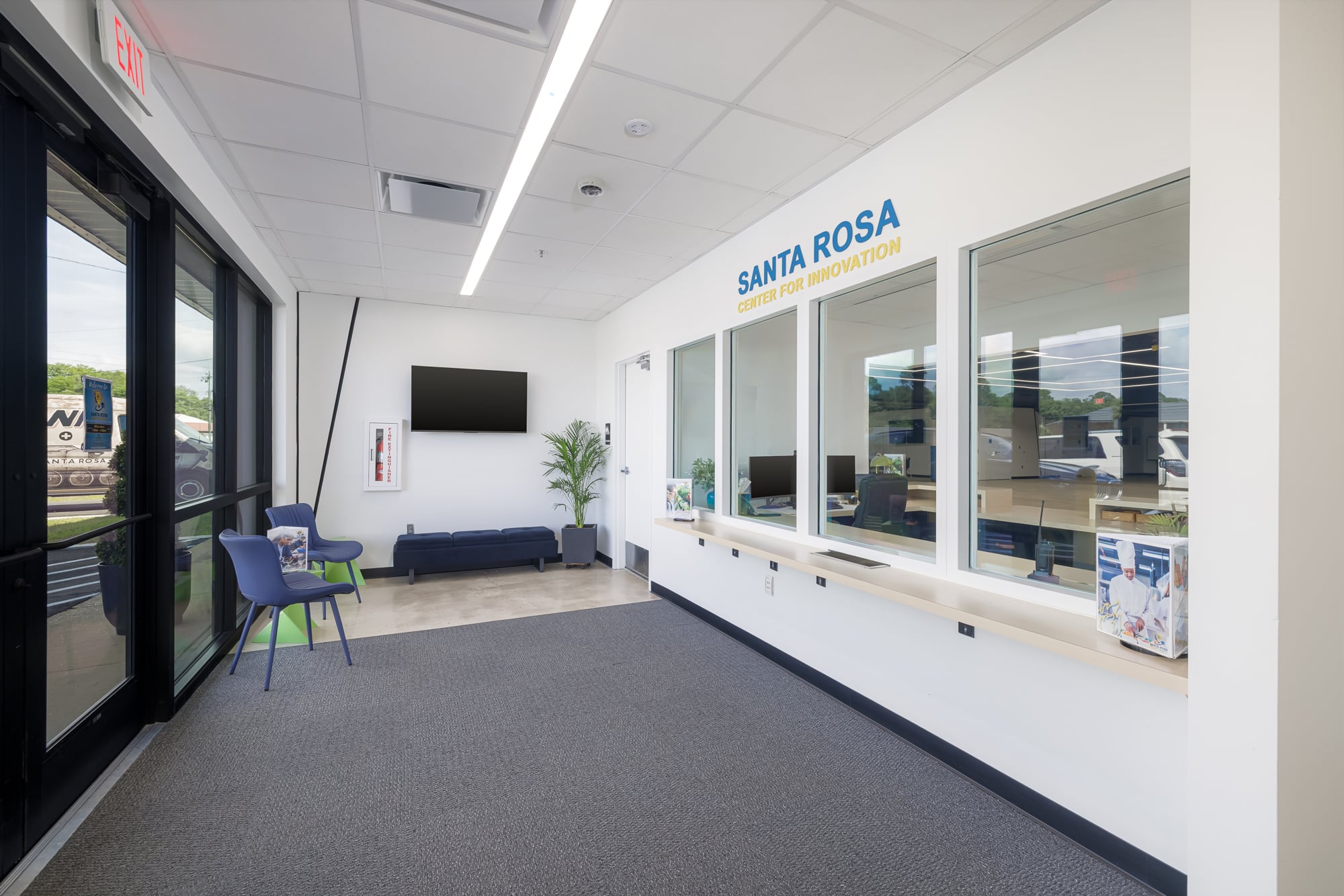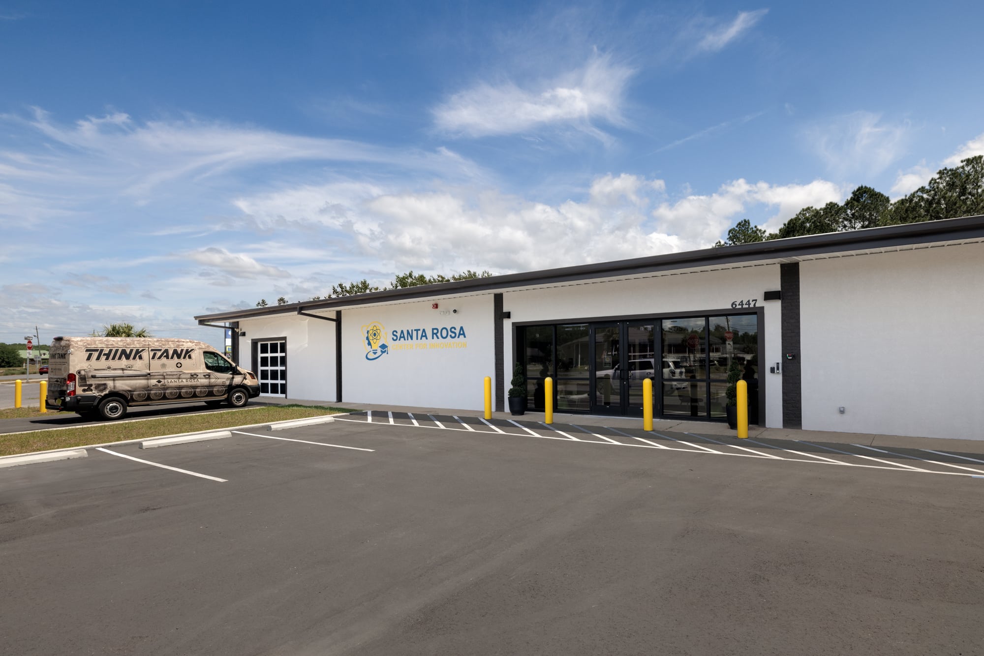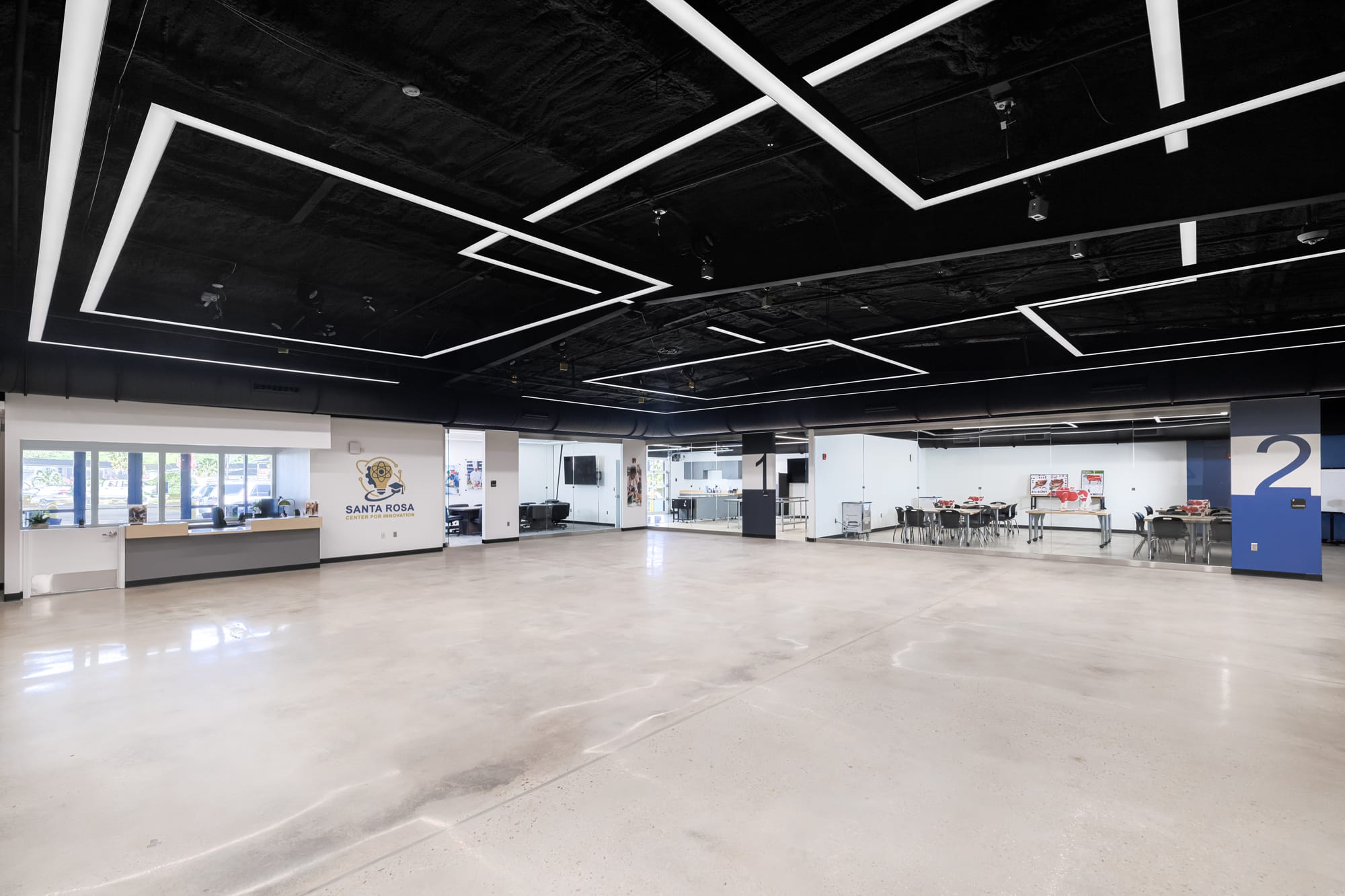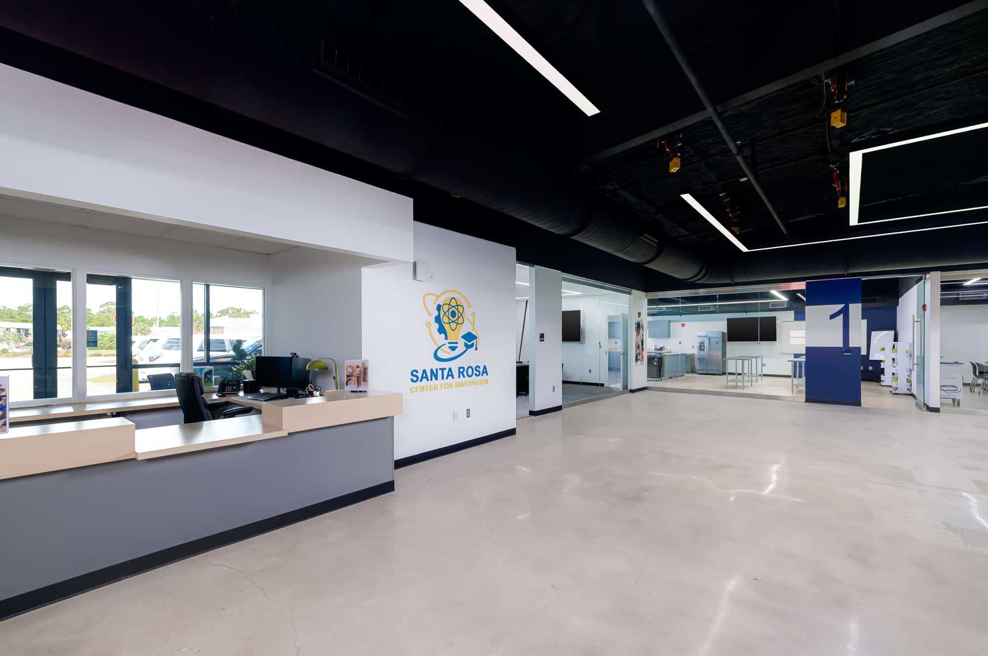 The Santa Rosa Center for Innovation project was completed for the School District of Santa Rosa County and was designed by Sam Marshall Architects. The work consisted of the renovation of an existing metal building to create a modern educational facility known as the Santa Rosa Center for Innovation. The renovated space was designed to support hands-on, immersive learning and expand access to Career and Technical Education programs.